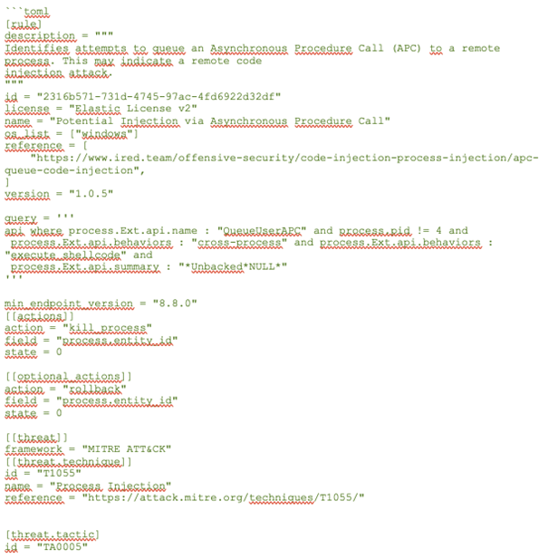 Ein Blick auf die Regel „Potential Injection via Asynchronous Procedure Call“: