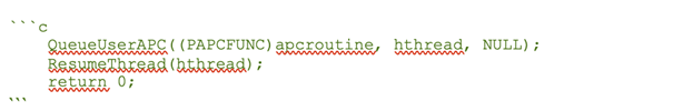 Einfügen des Codes in die APC Queue und starten des Prozesses