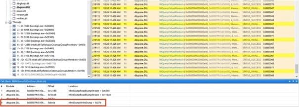 - Der ausführende Prozess importiert die Funktion MiniDumpWriteDump aus den System- Bibliotheken dbgcore.dll oder comsvcs.dll