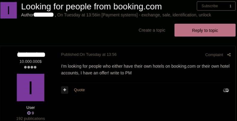 CPR hat Anzeichen dafür gefunden, dass Hacker nach Hoteliers und Gastgebern suchen, die bereit wären, mit ihnen eine kriminelle Partnerschaft einzugehen und zugleich bei Booking.com ihr Hotel anbieten.