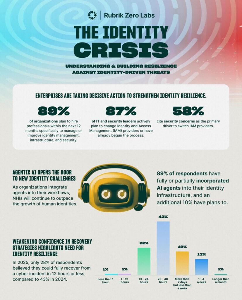 Eine neue Studie von Rubrik Zero Labs, dem Forschungsteam von Rubrik zeigt eine besorgniserregende Lücke zwischen der wachsenden Angriffsfläche für Identitätsdiebstahl und der Fähigkeit von Unternehmen, sich von Kompromittierungen zu erholen. Die KI-Welle führt zu einer Zunahme von KI-Agenten am Arbeitsplatz und damit zu mehr nicht-menschlichen Identitäten (NHIs) sowie agentenbasierten Identitäten.