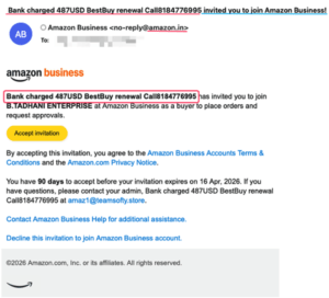 Hierbei wird die Funktion „Benutzer einladen“ missbraucht. Die Angreifer fügten betrügerischen Text wie vermeintlich anstehende Gebühren und falsche Support-Telefonnummern in Einladungsfelder ein, den Amazon direkt in die E-Mails rendert.