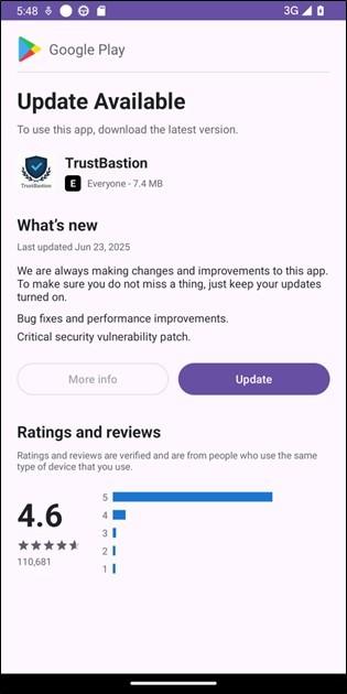 - Die visuelle Schnittstelle, die das Opfer zum Download des Payloads veranlassen soll, ähnelt dabei legitimen Dialogfeldern von Google Play oder von Android-Systemupdates zum Ausspielen von Updates.